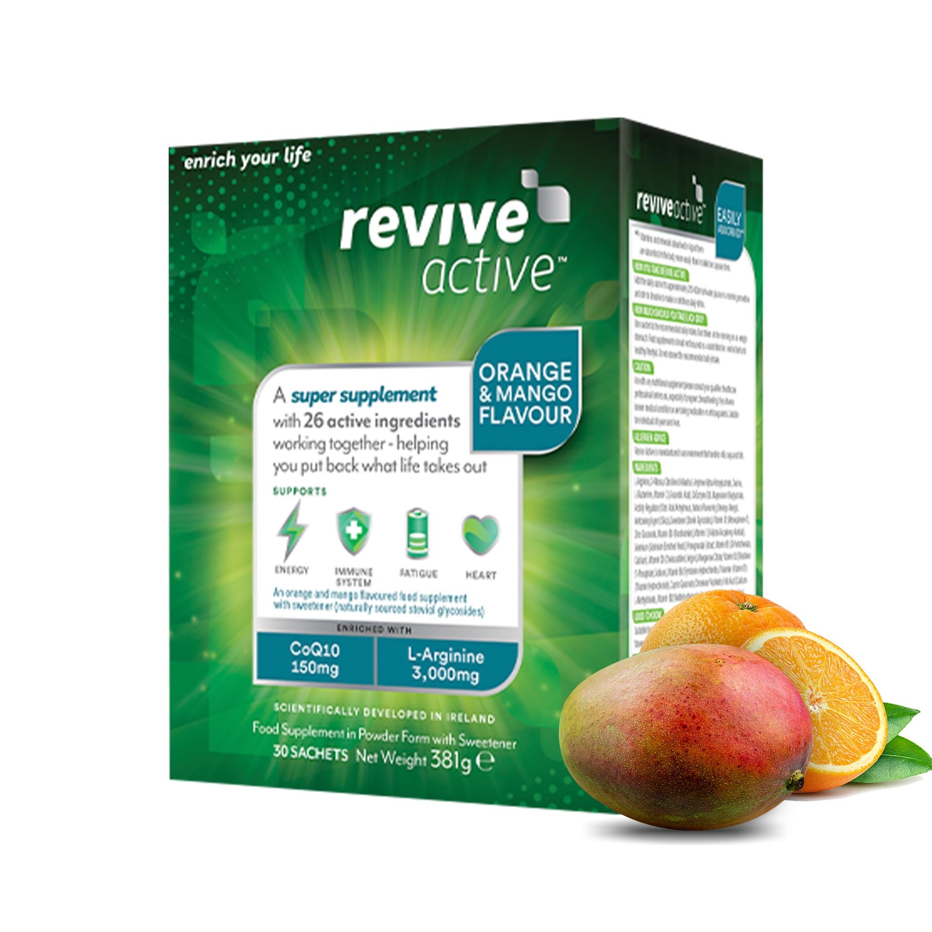 Revive Active is a premium daily supplement specially formulated for adults aged 18 and over . Packed with 26 expertly chosen ingredients—such as essential vitamins, minerals, amino acids, and CoEnzyme Q10—it delivers all-in-one nutritional support to help maintain overall health and wellbeing.